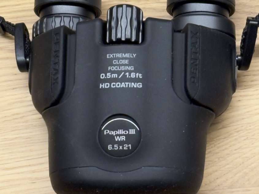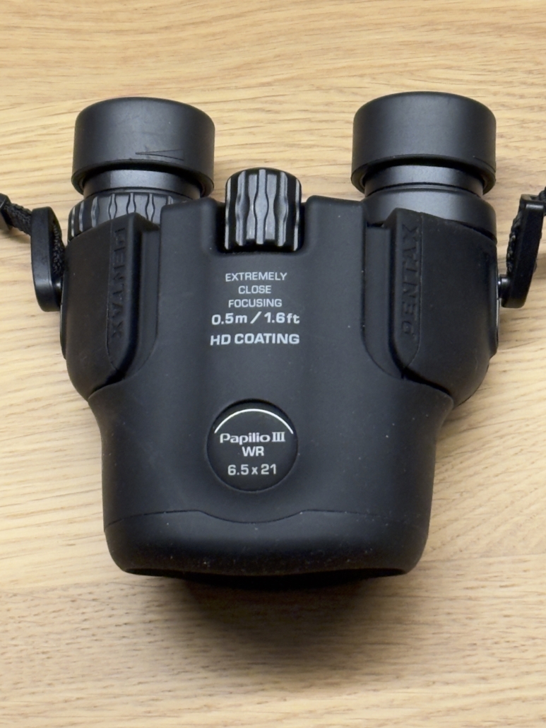In 2025, Pentax brought out a slightly modified version of its successful Papilio models 6.5×21 and 8.5×21, named Papilio III WR. The “WR” stands for “weather resistant”, so the new version is now fully splashproof; beside that, new AR coatings, new armours and a minimally modified diopter adjustment mechanism are the changes from the previous Papilio II version, all other optical specifications stay the same (see therefore the separate post for the Papilio II, https://binocular.ch/pentax-papilio-ii-6-5×21/)